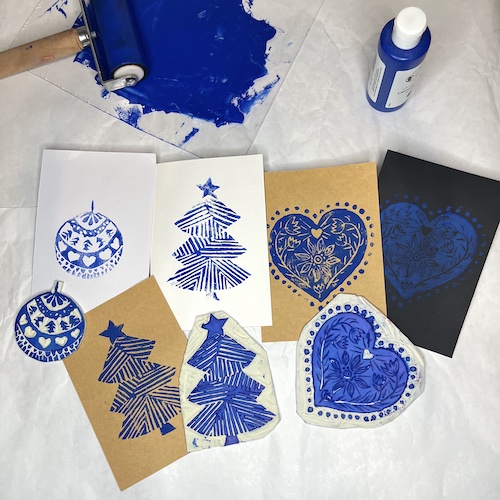 Sculptez vos propres tampons ! À l’aide d’outils de gravure, creusez votre motif dans la plaque de lino ou de gomme à graver. Une fois encré, votre tampon peut orner carnets, cartes, tissus… Une technique artisanale pour créer des motifs uniques à l’infini.