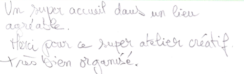 Pas besoin de savoir dessiner ou écrire, venez avec votre spontanéité ! Les jeux proposés et les divers outils à votre disposition vont réveiller votre créativité. Amusez-vous avec les mots et les phrases, ou avec les formes, les couleurs et les matières, pour des résultats souvent étonnants.